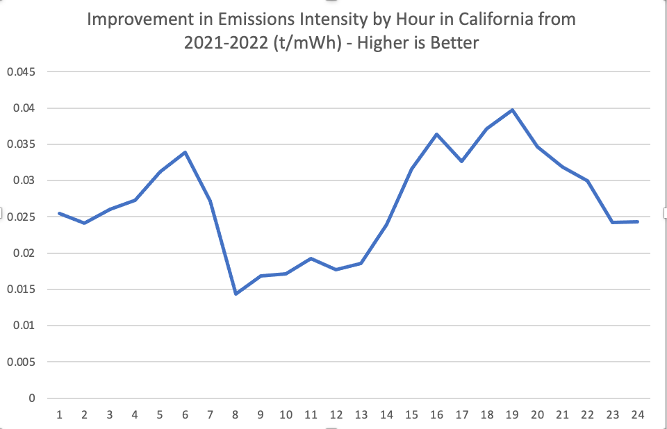 As far as I can tell, the reason for the improvement is that we are cleaning our baseload power (less coal, more hydro and nuclear) and adding new renewables to the mix (nearly 3 gigawatt hours of utility scale solar more in 2022 than 2021).
